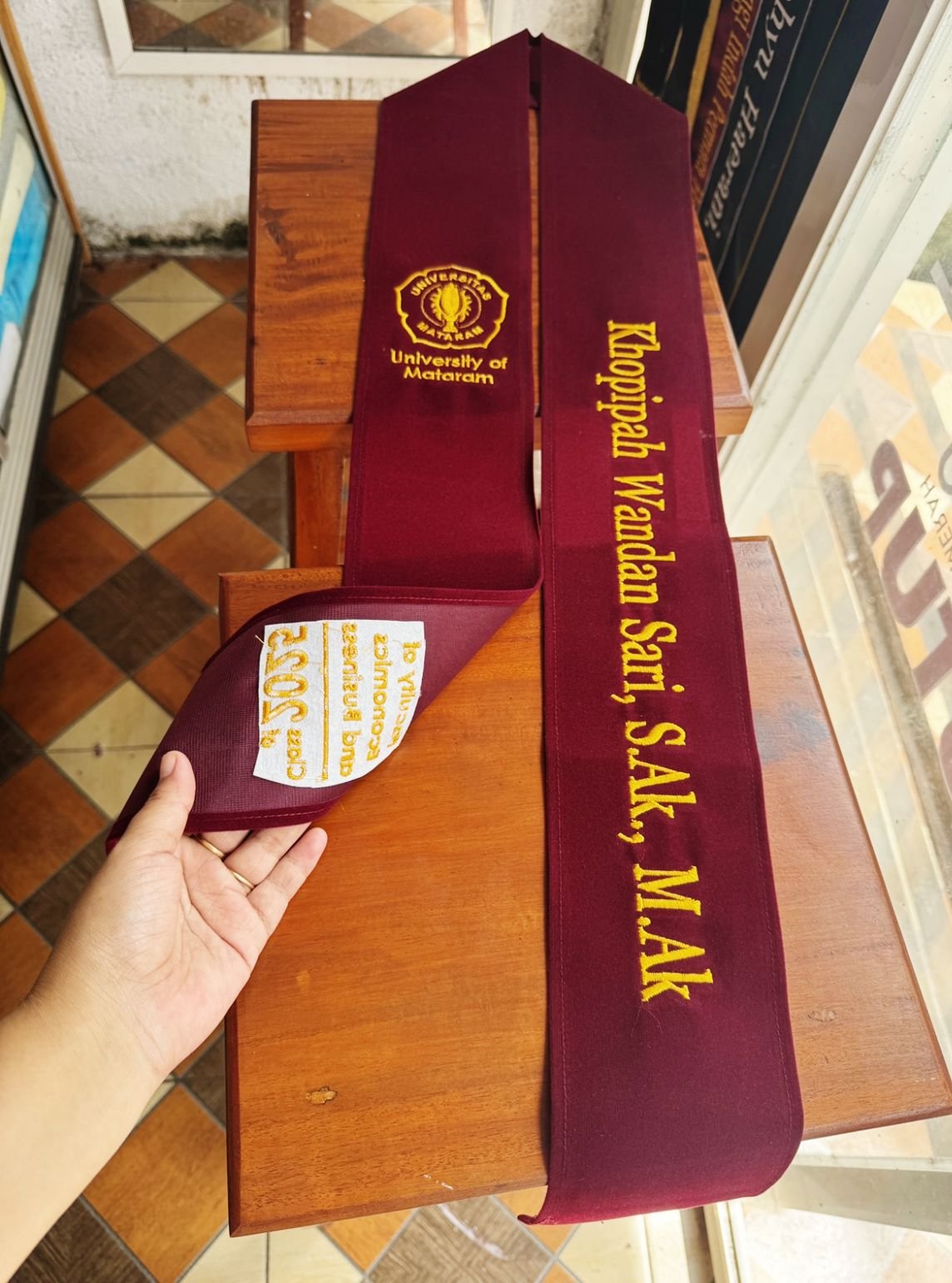 Rayakan momen spesial wisudamu dengan selempang elegan yang dibuat khusus untukmu! โจ